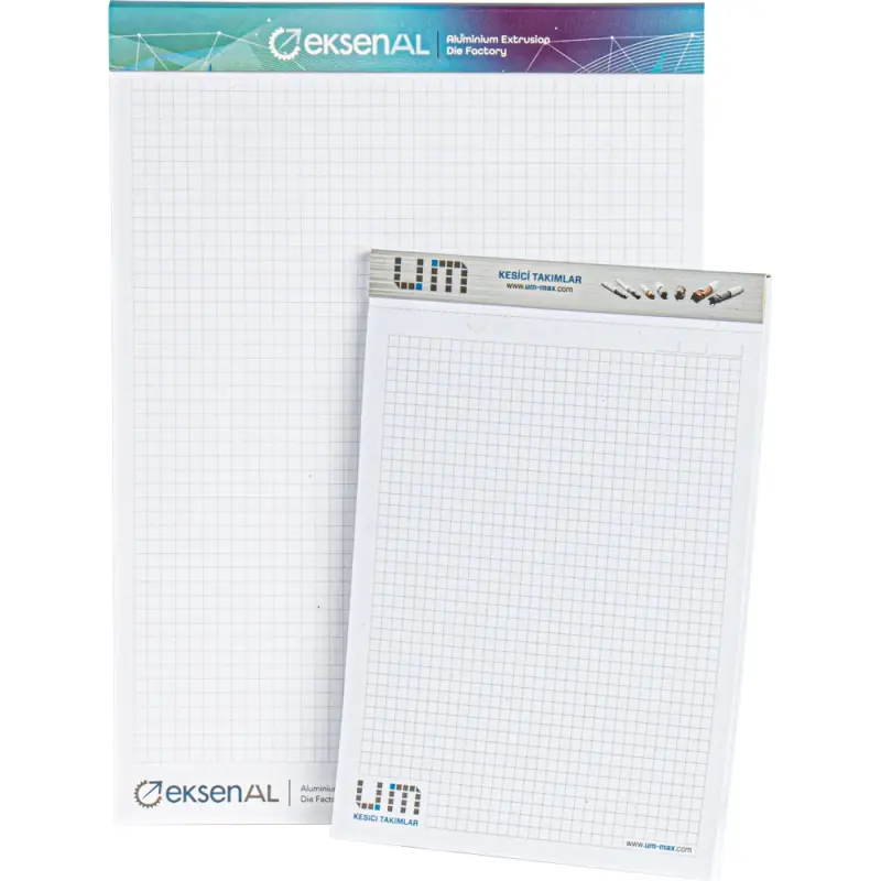 * A4 - A5 - A6 * Kapak: 270gr. A.Bristol + Destek Kartonu Sıvama * Mat veya Parlak Selefon / Taç Kapak * İç: 1. Hamur 80gr. / Tek Yön Baskı * 50 Yaprak / Üstten Perforaj